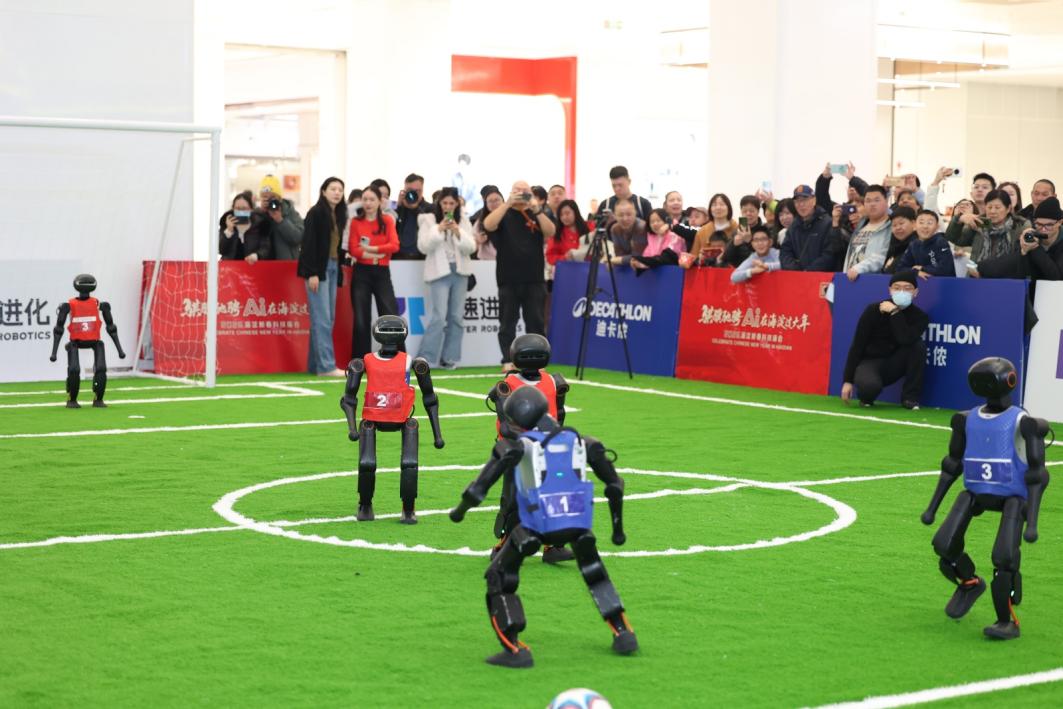 加速进化机器人3V3足球赛即将精彩上演!这可不是普通的表演赛,全程零人工操控,纯靠 AI 自主对战!相比去年 2V2,今年 3V3 的硬核技术全藏在三大算法的神级协同里,快节奏攻防对决,机器人全程自主决策、默契配合,这就是 AI 运动领域的硬核实力秀,科技竞技让这个年的热闹更新颖了些!