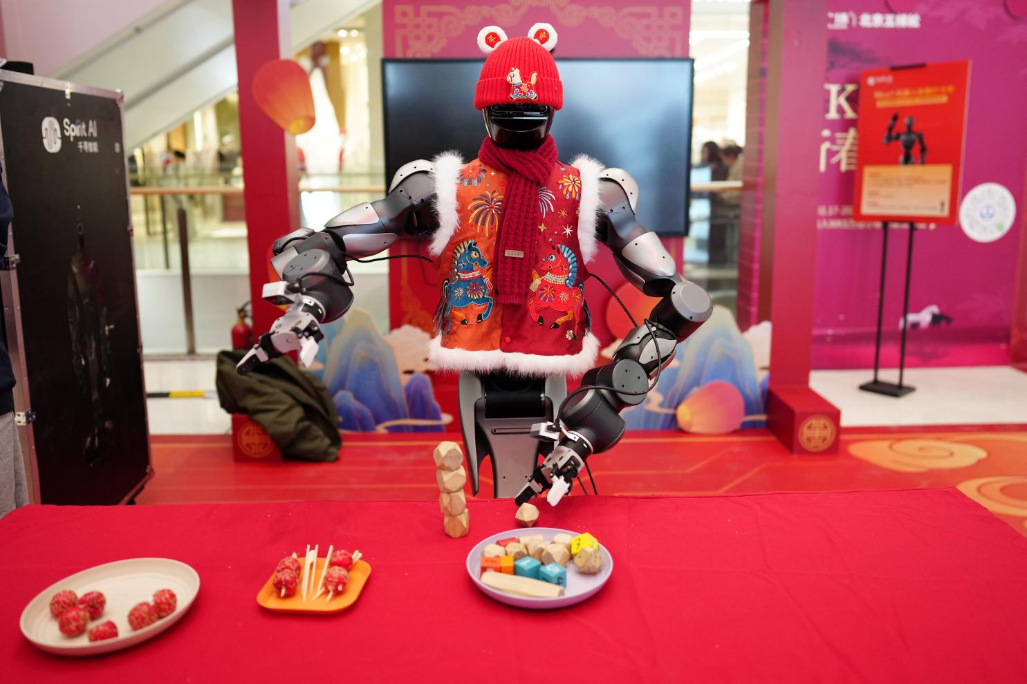 以传统灯谜为载体,由系统可生成专属马年主题灯谜,让市民在闯关中感受民俗魅力与 AI 科技趣味。同时海淀具身智能标杆企业千寻智能携明星人形机器人“小墨”闪亮登场,现场串糖葫芦。此番亮相庙会,将以精准机械臂为灯谜获奖者送上礼物与祝福,让硬核科技与新春年俗碰撞融合。