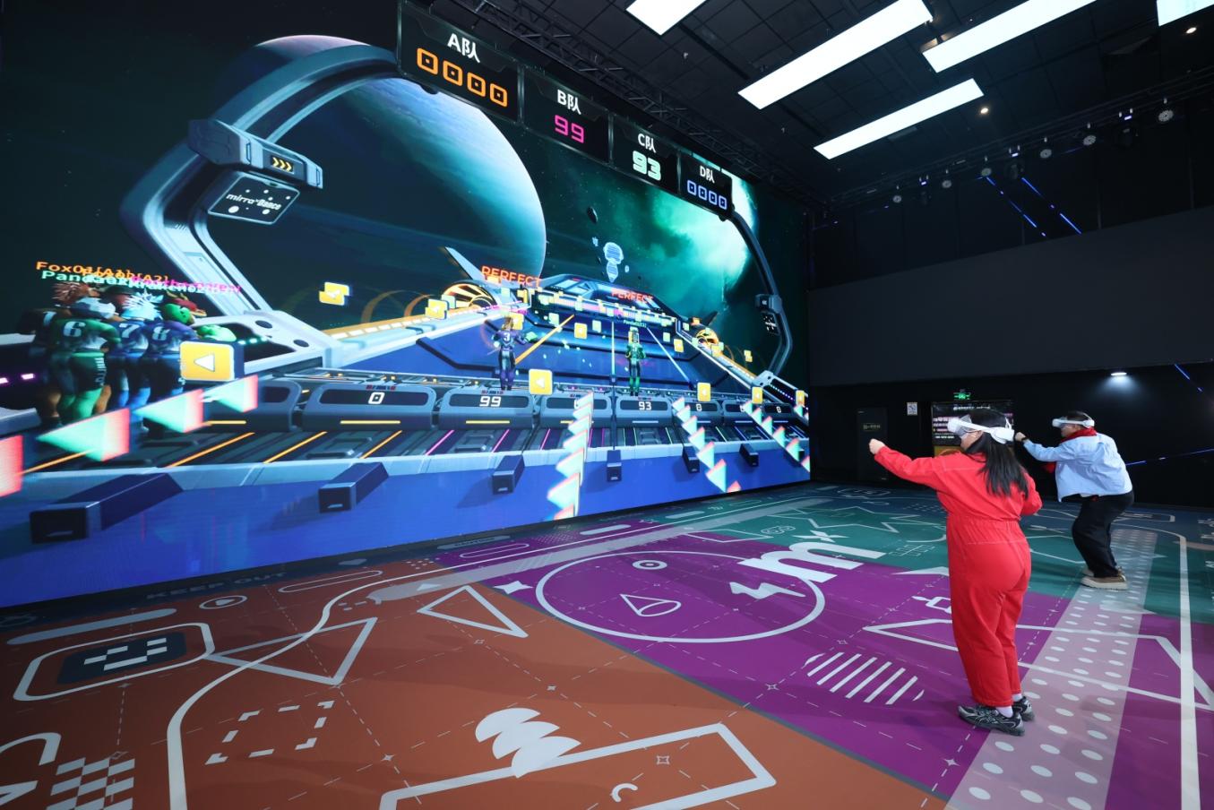 全国首家巨幕沉浸游戏空间——耀莱一号Mirra奇镜派对融合厅,打造潮玩社交新场景。配备三面4KLED互动巨幕与多源融合动作捕捉系统,你可以佩戴VR设备在巨幕前奔跑跳跃,屏幕中的虚拟角色随之灵动闪现。从沉浸式VR体验到“影院+”复合空间,一场关于影院功能的转型正在悄然发生。