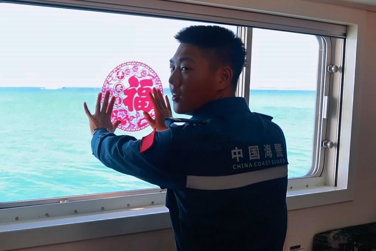 窗花是年的眼睛,更是心底的祈愿。执法员们将浸湿的窗花轻轻贴上舷窗,“福”字在阳光的穿透下,将“平安是福”的古老祝语投射进蔚蓝的海天之间。一位年轻的海警执法员望着窗外说道:“即使今年不能回家过年,舰艇就是我的家,一样也有年味儿。”——这“年味儿”,是文化传承的韧性,是四海为家的豁达,更是中国海警守海护疆的赤胆忠心。