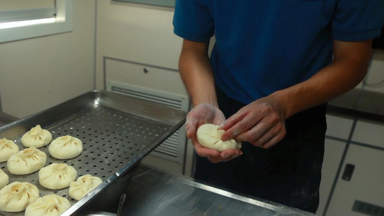 年夜饭,餐厅里热气蒸腾,香气扑鼻。成了整个舰艇最热闹的角落。北方的同志手法娴熟,擀面杖旋转出圆圆的皮;南方的青年虚心求教,指尖翻飞间,笨拙却认真地将面团化作胖嘟嘟的包子。肉馅里调和着五湖四海的味道,蒸笼里升腾着人间烟火的温度。当第一屉包子出笼,众人围拢,咬下的瞬间,有人轻声说:“这味儿,有家的味道。”这穿越山海的家乡味,不是简单的味觉记忆,而是文化认同的密码——无论来自天南海北,无论身处天涯海角,一顿热气腾腾的团圆饭,总能让人找到情感的锚点、心灵的归宿。面团在掌心揉捏的厚实触感,蒸汽模糊眼镜片的朦胧瞬间,交流间相视一笑的默契,这些细碎而温暖的片段,共同构成了南海上春节最生动的注脚。