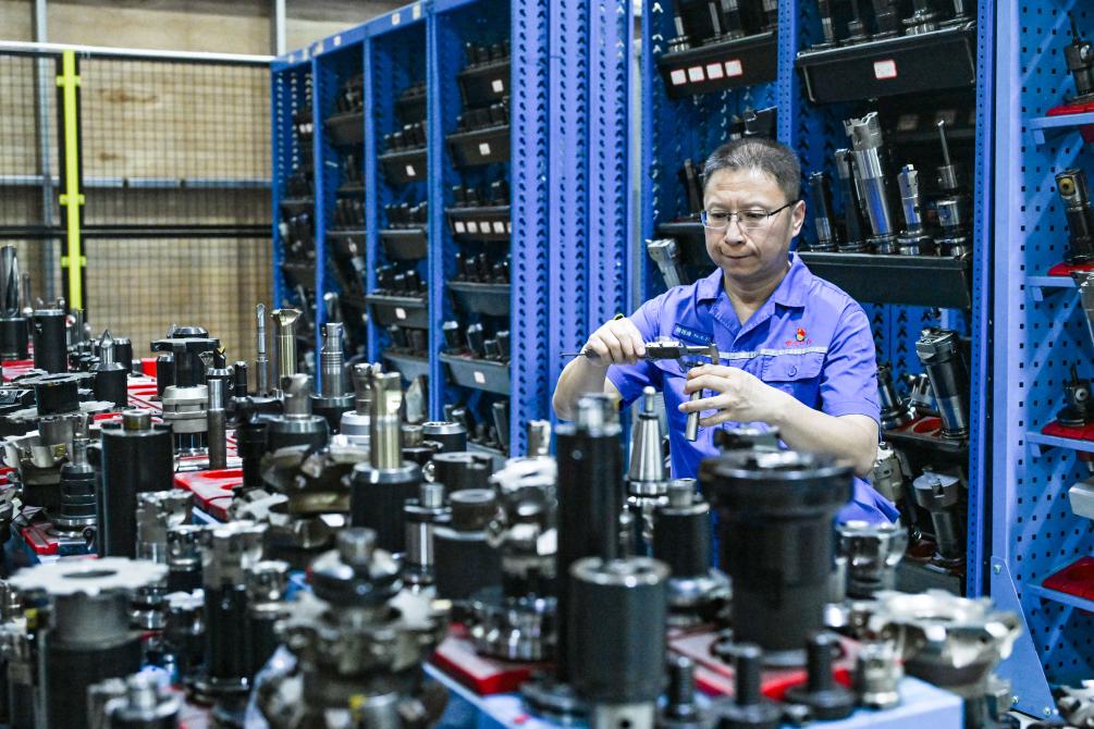 2025年5月23日,傅国涛在重庆红江机械有限责任公司生产车间作业。新华社记者 王全超 摄