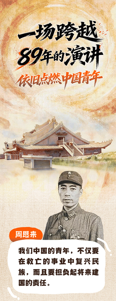 “我们中国的青年,不仅要在救亡的事业中复兴民族,而且要担负起将来建国的责任。”89年前,周恩来在武汉大学的一场感召全国青年的演讲,至今仍感动着当代青年。