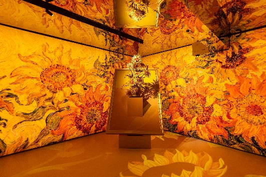 全新启幕的朱炳仁798艺术馆坐落于798艺术区心脏地带,纯白建筑与铜的装饰交织,极具现代质感。馆内陈列了《燃烧的向日葵》《跳舞的人》《千浪卷雪》等经典熔铜作品,其熔铜的肌理与强烈的色彩,搭配精心设计的光影装置,共同营造出沉浸式的铜色美学体验。