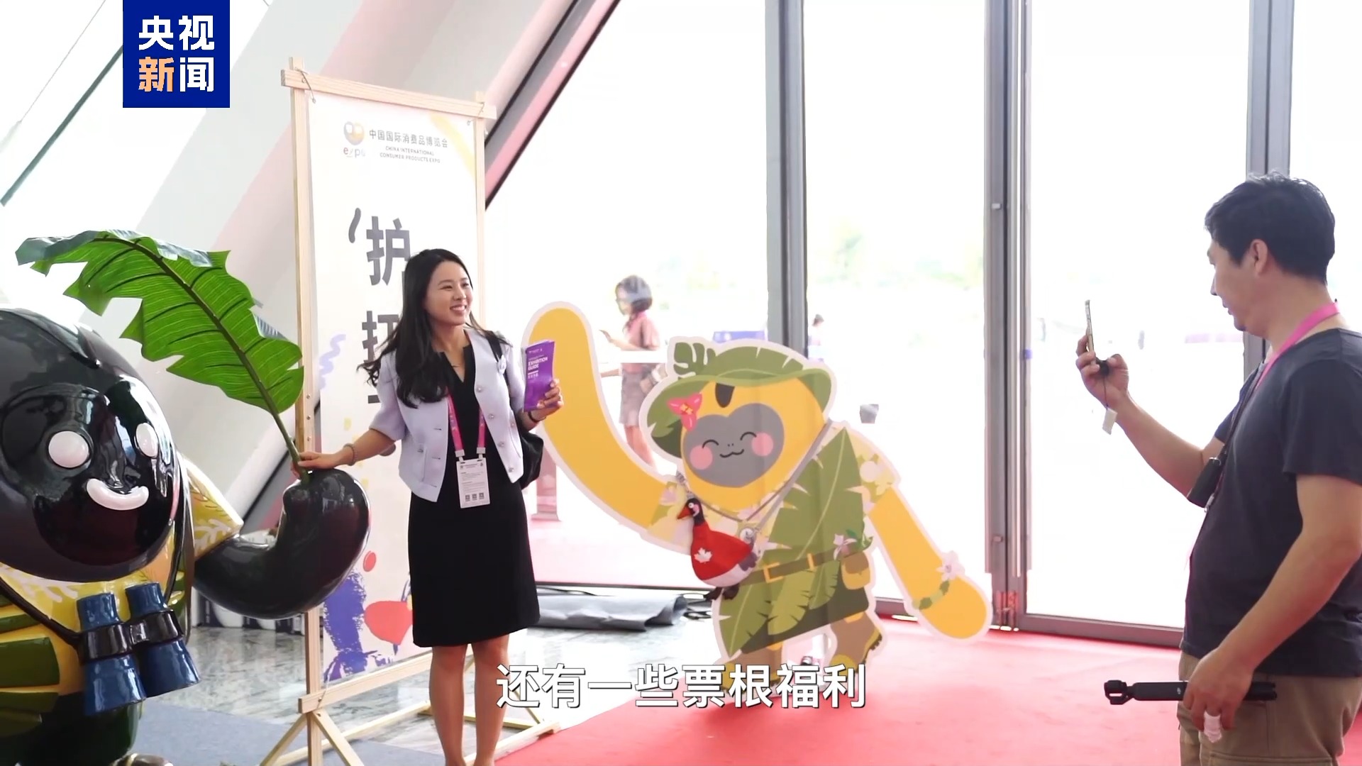 观众 庞凯妮:这次来之前做了挺多的功课,最棒的就是发现这边有免税商店、一些票根福利,可以通过集章兑换小礼品,第一次来期待把海南都玩一遍。