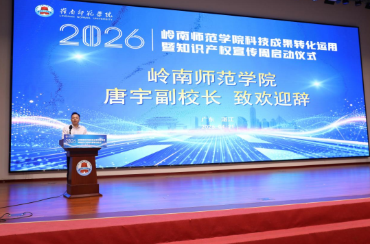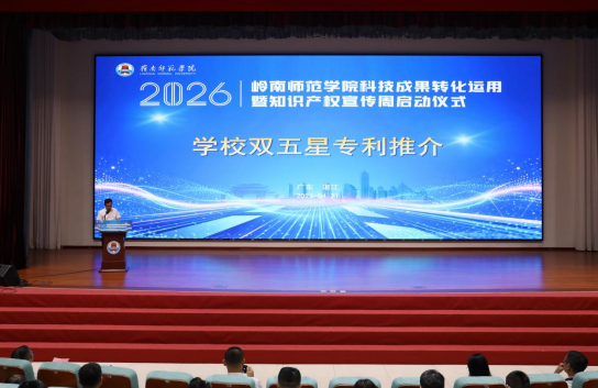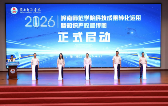 2026年4月21日,岭南师范学院2026年科技成果转化运用暨知识产权宣传周在该校音乐厅正式启动。活动以“知产赋能新质生产力,‘先用后转’打通转化最后一公里”为主题,聚焦科技成果转化的关键环节,通过制度创新推动专利转化运用,服务区域经济高质量发展。