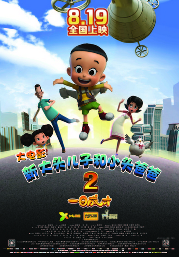 由央视动画有限公司出品,鹿鸣影业有限公司、中央电视台少儿频道、中国广播电影节目交易中心、北京亚细亚影视制作发行有限公司、西安曲江影视(投资)集团有限公司、合一信息技术(北京)有限公司联合出品的原创动画电影《新大头儿子和小头爸爸2一日成才》将于2016年8月19日登陆全国院线。王博士会成功吗?大头儿子真的能“一日成才”吗?让我们一起到影院寻找答案。