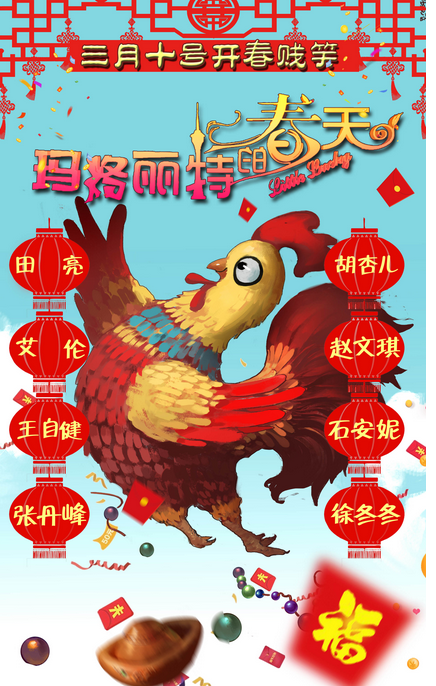 由著名青年导演王宁执导,田亮、艾伦、王自健、胡杏儿、赵文琪、石安妮、徐冬冬等人联袂主演的爆笑喜剧电影《玛格丽特的春天》曝光了一组元宵版海报。