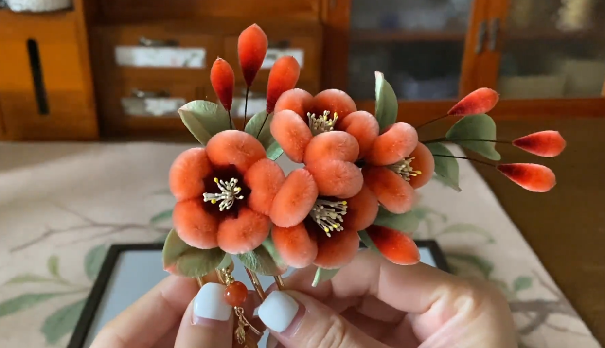 Velvet flowers, an ancient craft with a history spanning over a millennium, once thrived in cities such as Beijing, Tianjin, Nanjing, and Yangzhou. From the luxurious adornments worn by court concubines in the Tang Dynasty (618-907) to the grassroots decorations donned by commoners in the streets of the Ming and Qing dynasties (1368-1911), this art has consistently been a fashionable item for those who pursue beauty.