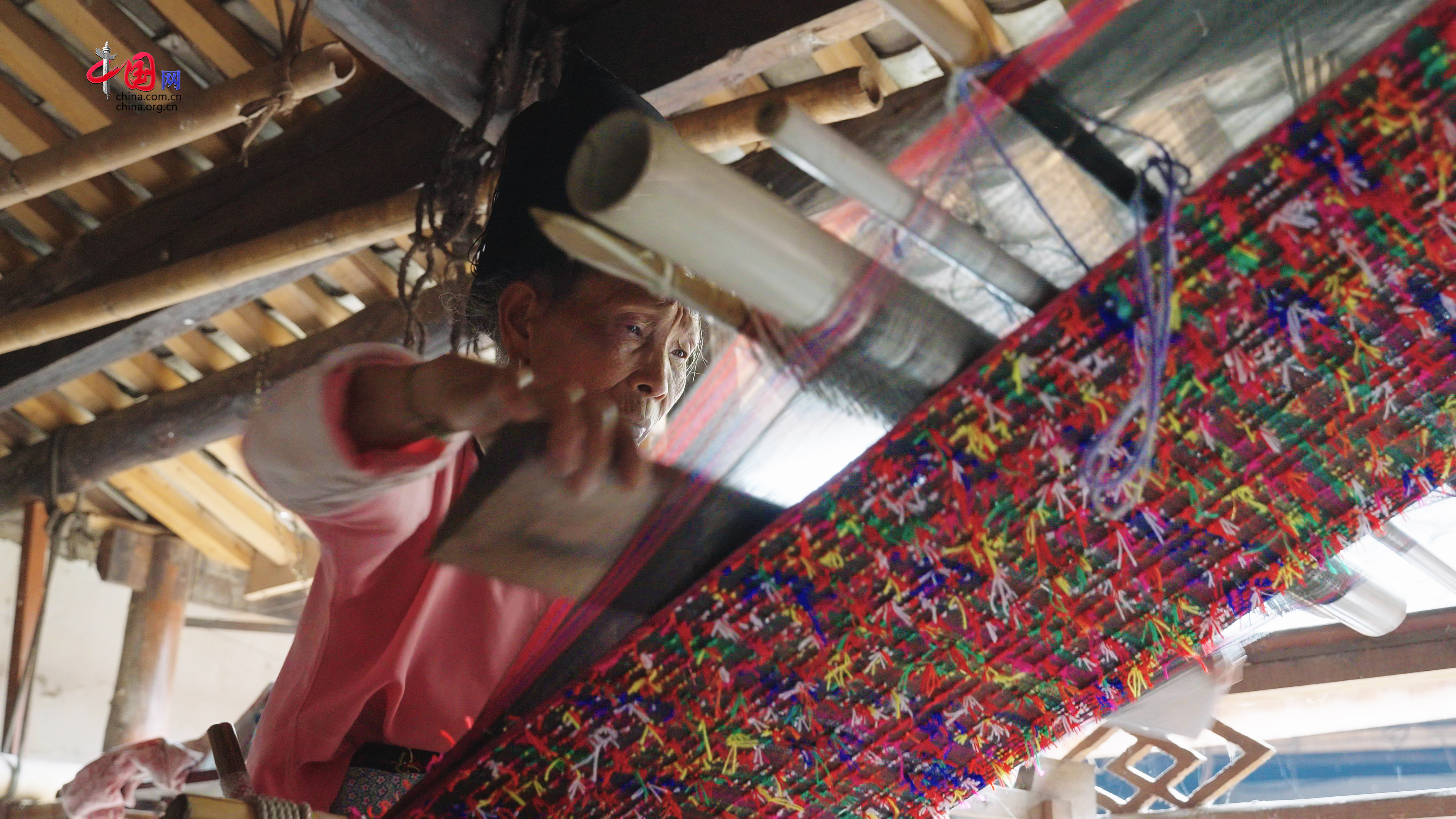 The majestic Gaoligong Mountain range extends southward from Tengchong City, forming a traditional home for the Achang ethnic group. Cao Mingkuan continues to live in his old house, where the rhythmic sound of the loom weaving fabric and the crackling of firewood echo together with the songs of "Zhepama and Zhemima,"reflecting the Achang people's tranquil yet vibrant way of life.