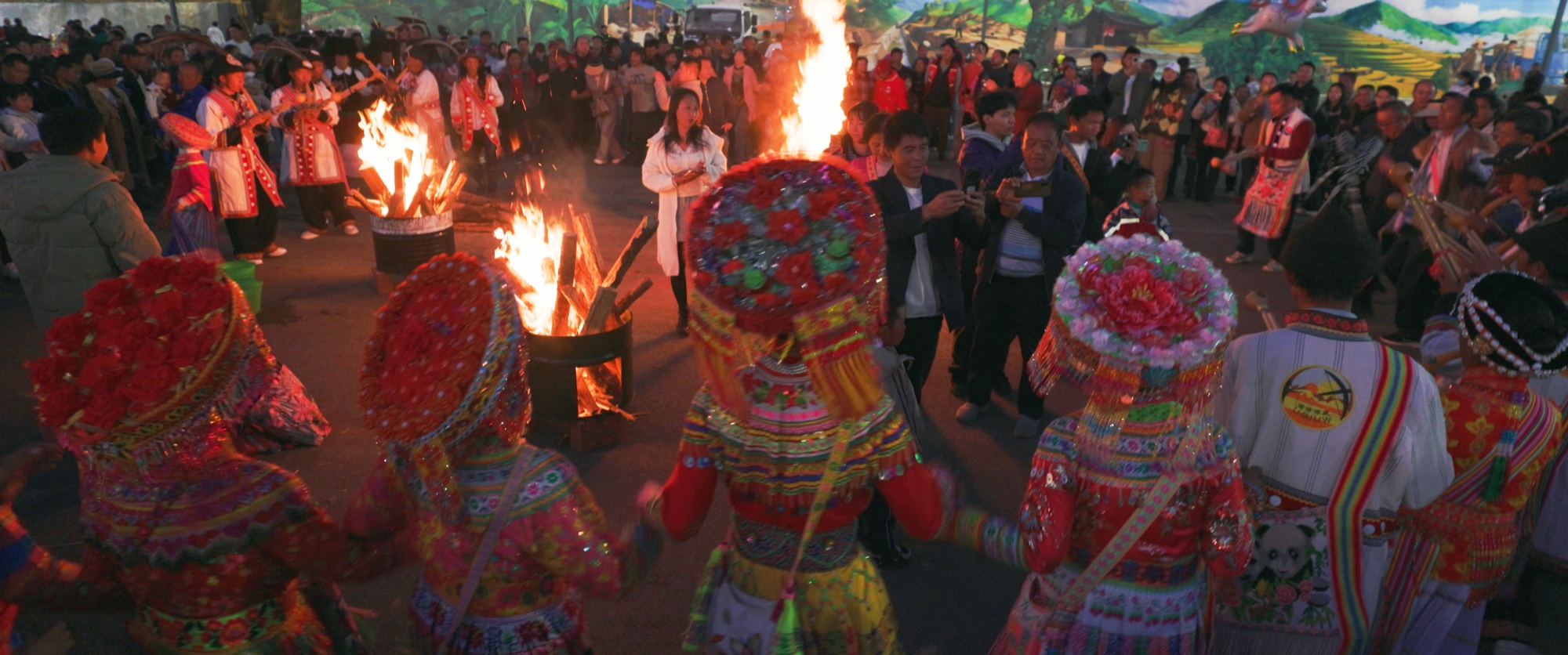 Everyone sat around the bonfire to warm themselves, and gradually, more and more people came in small groups. The sound of the hulusheng free-reed mouth organ started up, and the villagers rose to dance around the fire.