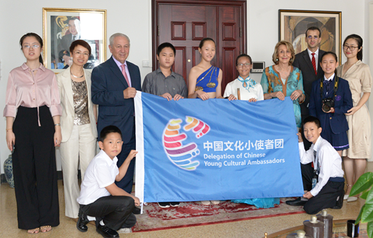 活动中,摩洛哥王国驻华大使阁下授予“中国文化小使者团”团旗,亲笔签写《中国文化小使者赴摩洛哥王国出访函》,并殷切寄语中国文化小使者作为年轻一代文化使者,担负起出访的使命与责任,大力弘扬丝路精神,促进两国文明互鉴,在两国青少年间缔结下深厚友谊,心手相携共同传播维护世界和平。