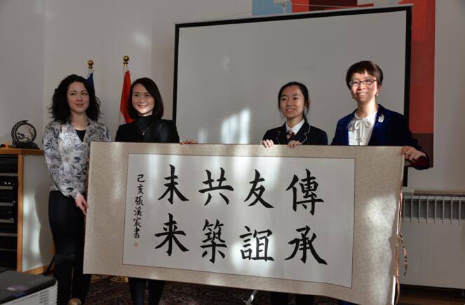 中国文化小使者赠送书法作品《传承友谊•共筑未来》