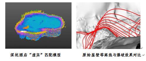 在著名的深坑酒店项目,中建八局利用三维激光扫描建立点云模型,与BIM模型或现场实体“虚实”匹配比对,辅助现场规划、设计验证、工程算量、质量动态管控等。该技术在深坑酒店项目对崖壁爆破实现精准计量及质量控制。