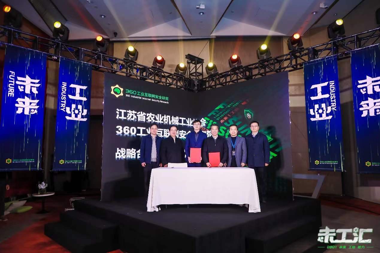 会上,在省市区领导的见证下,江苏省农机工业协会与360工业互联网生态联盟达成战略合作,这也是联盟正式成立后首次与新成员签约。江苏省农机工业协会是江苏省农业机械行业的重要组织,其与360公司的合作将为江苏省农业机械领域的数字化、智能化发展带来重大意义。