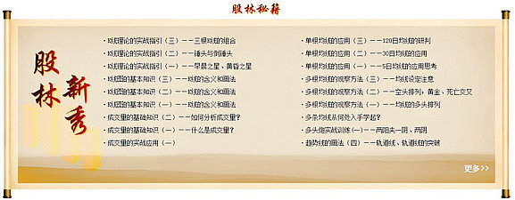 散户群体持股心态相对浮躁,常见追涨杀跌的非理性过激行为。调查发现,过半的股民对股市术语只是浅显的理解,对于技术方法更是懂之甚少。《股林秘籍》节目利用5分钟时间,通过视频讲授一个技术要点,帮助股民提高操盘技术水平,增加理性。
