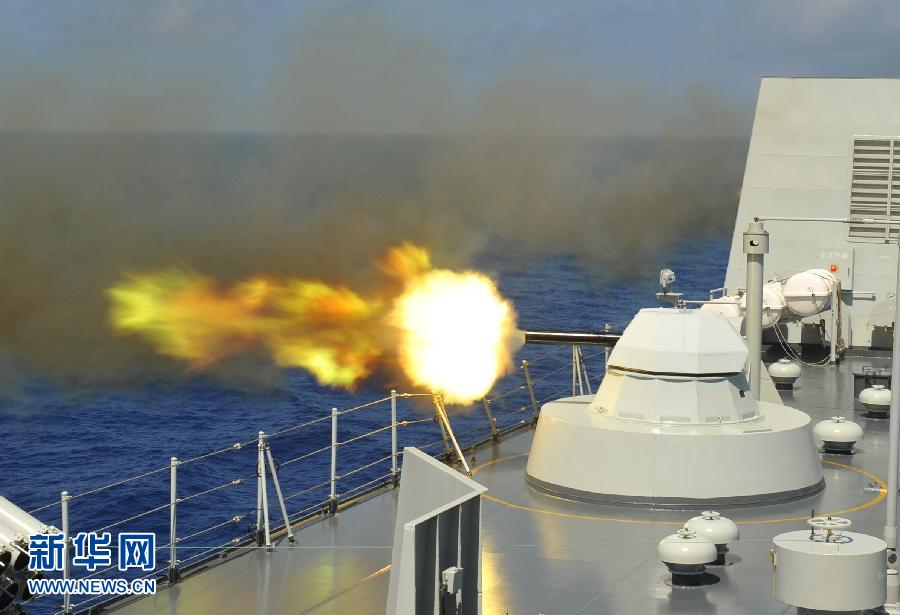 上午九点,随着一阵急促警铃的响起,南海舰队联合机动编队在西太平洋某海域临时军事训练区展开了主、副炮实弹射击训练。