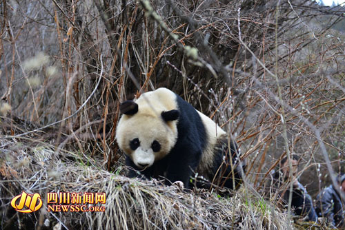 四川新闻网成都4月8日讯(记者 谢慧然王敏林)4月8日下午18时20分许,四姑娘山景区管理局工作人员接到村民报告,在双桥沟景区入沟5公里的左面山坡上发现一只大熊猫。景区管理局立即组织工作人员、森林武警、双桥村民等50余人前往施救。