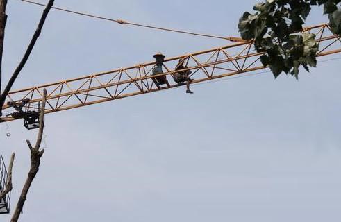 7月25日上午9时许,砀山县一女子因为款项赔付问题,一气之下爬上一个30多米高的塔吊要轻生,在上面僵持了6小时,结果因中暑昏迷了。