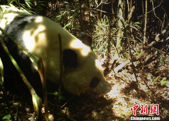 四川申果庄自然保护区内红外相机拍摄到的大熊猫影像。 四川申果庄省级大熊猫自然保护区管理处提供 摄