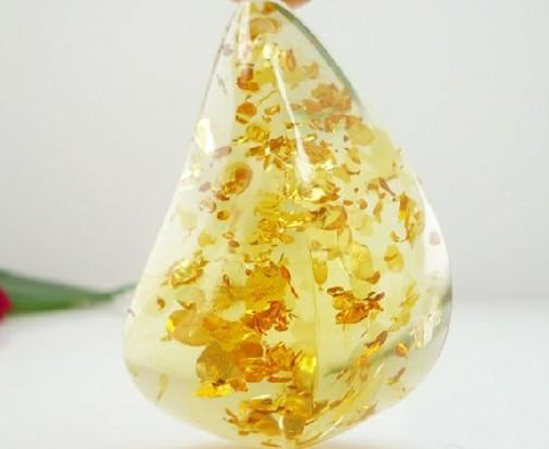 10.洗指甲油的药水:用棉签擦点反复擦试琥珀表面,没有明显的变化。塑料和压和琥珀都没变化,但是树脂和柯巴脂因为没有石化就会被腐蚀而产生粘粘坑,将松香放入药水中浸泡它会慢慢融解。(友情提醒:有的琥珀外有层上光物质,在药水擦拭下会变成白斑,但这层白斑可用指甲壳刮去露出琥珀表面,将药水擦拭在它上面再不会有任何的变化。药水对琥珀仍会有18%-20%的融解度,泡久表面可能变的雾蒙蒙的)