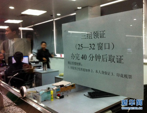 记者向现场工作人员了解到,房屋过户前大概要经过网签、资金托管、缴纳契税等几个环节,根据不同情况备齐相关的10余份材料就可以到大厅申请过户。大厅在早晨9点开始发号,每天发放65个过户号码。虽然每天还有5个过户号码可以提前预约,但已经排到两个月之后了。