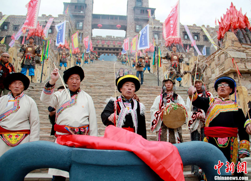中新社茂县11月3日电(记者安源)3日农历十月初一迎来羌历新年,记者从四川茂县宣传部获悉,茂县在羌历新年之际举行“中国古羌城”开城大典。