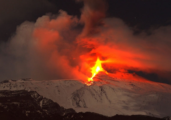 11月16日,意大利埃特纳火山再次爆发,岩浆喷涌,高度达数千英尺。它位于意大利西西里岛东岸,常年积雪,主要喷火口海拔3,323米,直径500米。周围有200多个较小的火山锥,在剧烈活动期间,常有大量熔岩溢出。