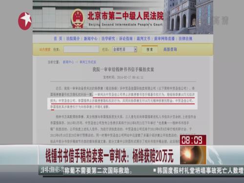 钱锺书书信案判决:杨绛获赔20万元