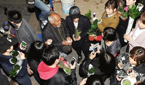 “老人卖花救子”微博微信热传 众网友抢购