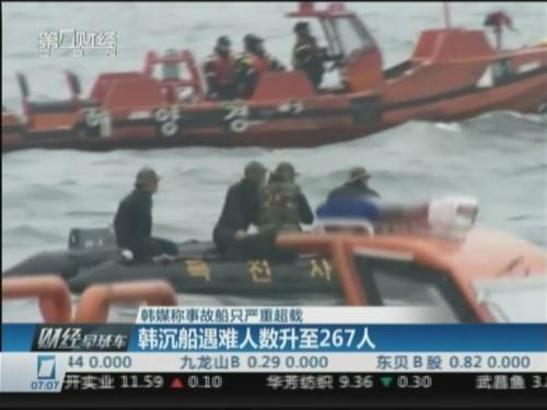 韩沉船遇难人数升至267人 船只严重超载