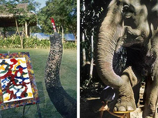 泰大象秀惊人天赋用鼻子绘非凡画作