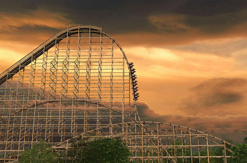 美国六旗游乐园-Goliath过山车(美国,伊利诺斯州) Goliath过山车速度达72m/ph,是世界上最快、最高的木制过山车。