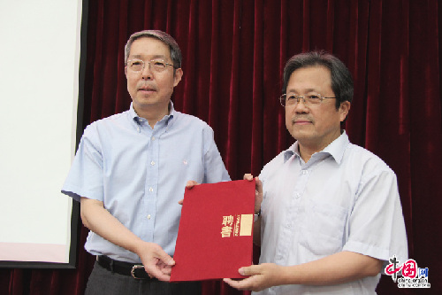 中国网7月11日讯 (记者 王一辰) 7月11日,人民中国杂志社在京举行人民中国书画院院长聘任仪式,聘请中国文联副主席冯远为院长,聘请原中国美协秘书长刘健为执行院长。中国外文出版发行事业局副局长方正辉、日本国驻华使馆文化参赞石飞节、日本国际交流基金会北京日本文化中心主任吉川竹二、西藏美协副主席唐天源、全日本华人书法家协会主席刘洪友等嘉宾及有关媒体约60人与会。