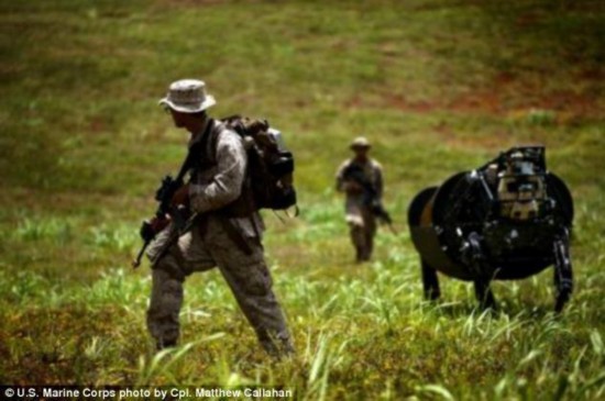 据美国海军陆战队官方Twitter消息称,Google旗下公司的步兵班组支援系统(Legged Squad Support System,LS3)机器狗在夏威夷跟随美国海军陆战队正式进行了第一次实地运载测试。该机器狗名为“领头狗”(AlphaDog),而美国海军陆战队的士兵们给它起了个昵称叫Cujo,与影片《狂犬惊魂》中强壮凶猛的狗狗同名,希望它像影片中的Cujo一样强壮有力得惊魂。