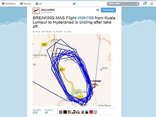一架马航MH198的波音737客机,13日晚10时20分从吉隆坡起飞,准备前往到印度城市海得拉巴。然而客机起飞后不久,由于自动导航系统故障,机师为安全计决定折返,客机在空中盘旋近4小时,直至燃油耗尽,于14日晨约2时紧急降落吉隆坡国际机场。
