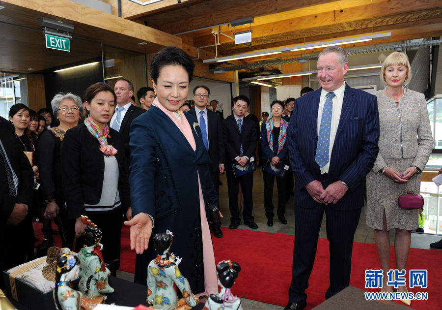 11月20日,中国国家主席习近平夫人彭丽媛访问新西兰梅西大学。这是彭丽媛参观学生创意中心。