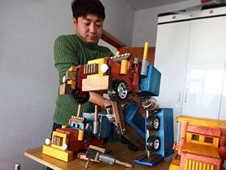 11月20日消息,动画片《变形金刚》陪伴了很多人度过美好的童年,长春市民刘先生是个70后,他也是看着《变形金刚》长大的,能创作一个变形金刚曾是他的童年梦想,最近,他的这个梦想终于实现了,和电视机里的“汽车人”不同,他的“擎天柱”是纯木头打造的,但是可以变形。