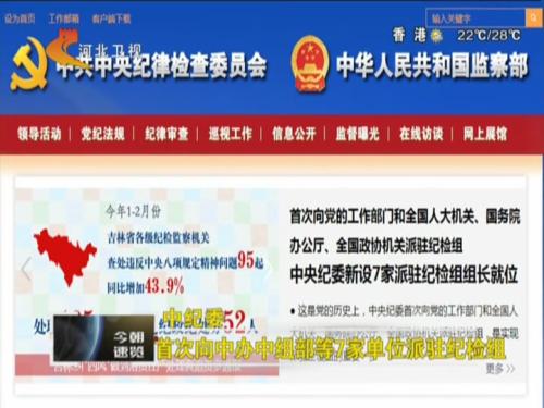中纪委:首次向中办中组部等7家单位派驻纪检组