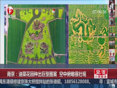 3月21日,农民在田野内“编织”“龙袍”,南京六合油菜花盛开,当地农民加紧制作巨型“龙袍”图案和“双龙戏珠”迷宫。