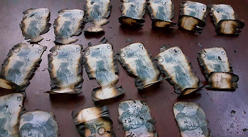 农妇3万现金被烧成渣