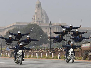 印度:阅兵彩排 再现摩托车叠罗汉