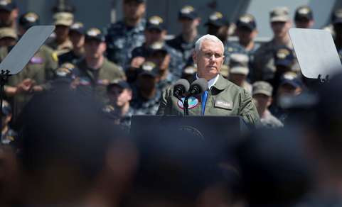 正在日本访问的美国副总统迈克·彭斯月19日上午访问了驻日美军横须贺基地,并登上“罗纳德.里根”号核动力航母。彭斯在航母上向美军官兵发表演讲时再次强调朝鲜是“最危险、最紧迫的威胁”。