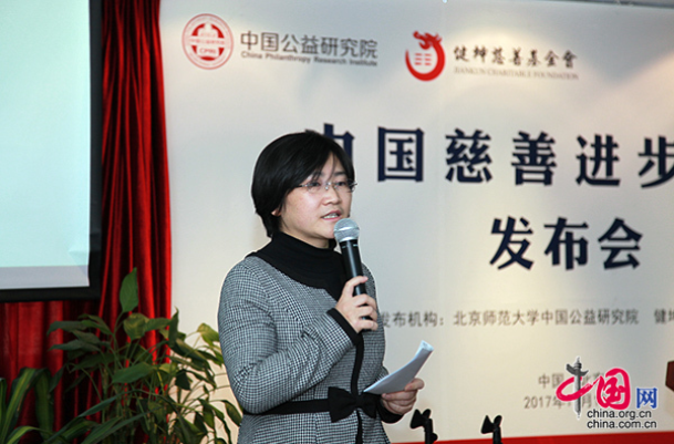 本次发布会由北京师范大学中国公益研究院助理院长程芬主持,研究主管邵灵玲发布内容。此外,会议还邀请到北师大中国公益研究院、国际公益学院院长王振耀作精彩点评,健坤慈善基金会理事长乔迁、秘书长何斌进行分享。