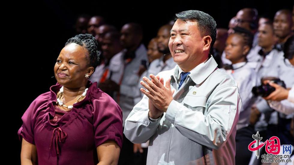 北汽集团董事长徐和谊(右)与IDC主席Busi Mabuza在下线仪式现场 李远 摄