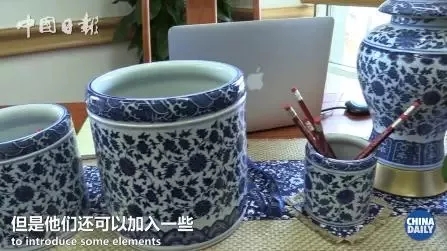 瓷器、折扇、毛笔……家里随处可见的中国元素显示着他们对中国文化的喜爱。