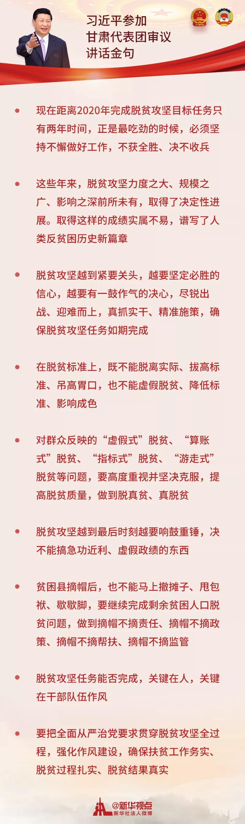 在甘肃团所作的重要讲话中,习近平有的放矢又着眼全局,对脱贫攻坚提出新的要求。