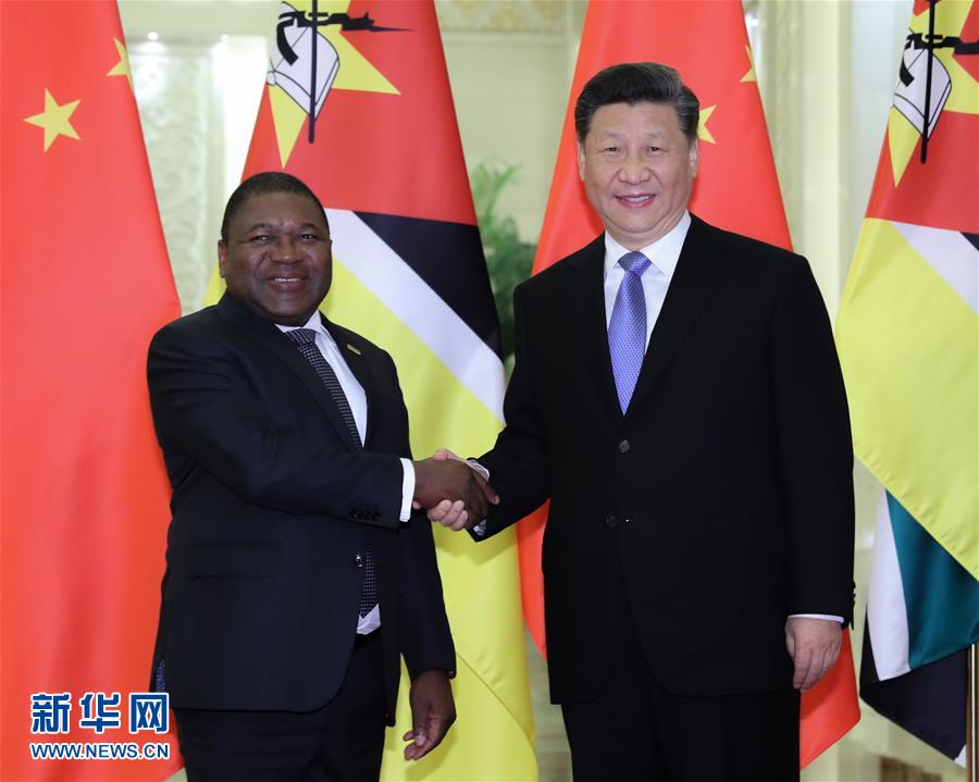 习近平指出,欢迎总统先生来华出席第二届 “ 一带一路 ” 国际合作高峰论坛。在本届论坛上,各国领导人将本着共商共建共享原则,讨论发展政策对接、基础设施互联互通、可持续发展等共同关心的议题,为促进世界经济增长、推动国际经济合作 作出 更大贡献。莫桑比克是古代海上丝绸之路的重要一站,近年来积极参与共建 “ 一带一路 ” 。双方已经就共同推进 “ 一带一路 ” 合作规划达成一致,要致力于推动互利合作提质增效,加强人文交流合作,让中莫 “ 同志加兄弟 ” 的传统友谊不断得到继承和发扬。