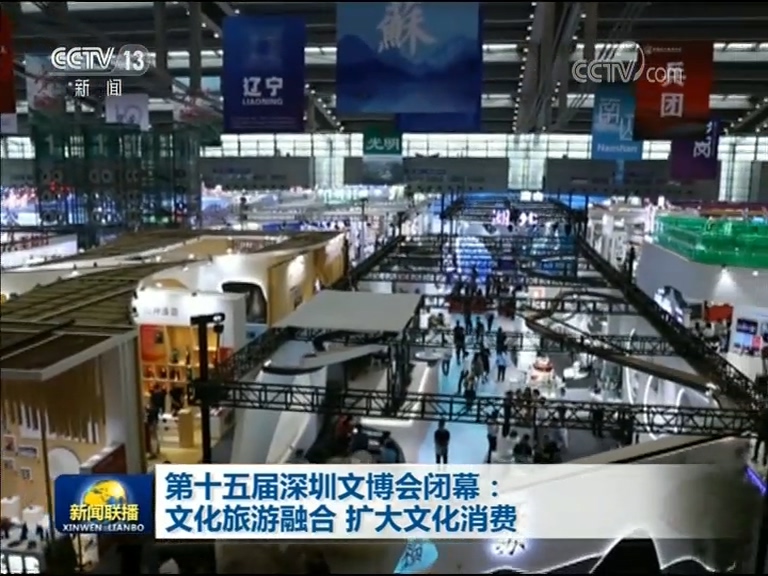 央视网 消息 (新闻联播):为期五天的第十五届深圳文博会今天( 5 月 20 日)闭幕,本届文博会汇集的 10 万多件海内外文化产品、 6000 个文化产业投融资项目显示出在文化和旅游融合的大背景下,广大居民的文化消费需求进一步提升。
