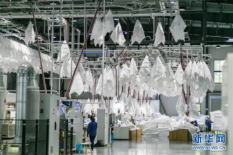 4月28日在湖南长沙拍摄 的梦洁家 纺智能生产线。 新华社发(陈思汗摄)